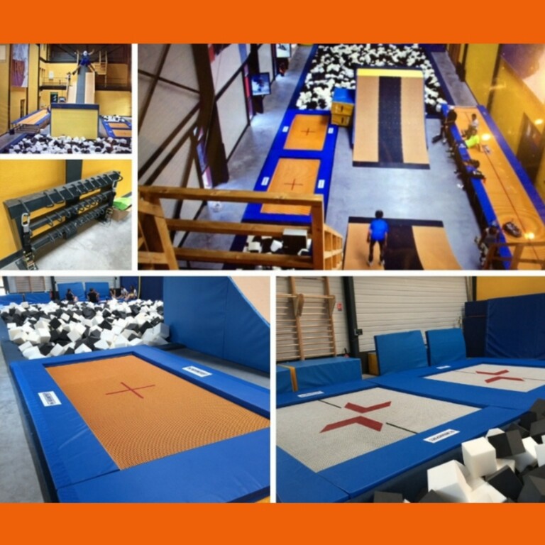 Centre National d'Entrainement : salle de trampo, rampe, gymnase (basket, badminton)